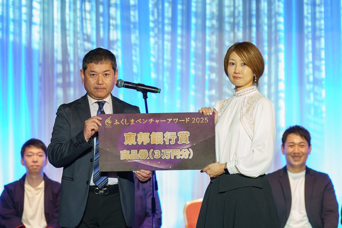 東邦銀行賞には、株式会社マザーソリューション 代表取締役 齋藤 祐子さんが選ばれました! 齋藤さんには東邦銀行賞として商品券3万円分が贈呈されました。